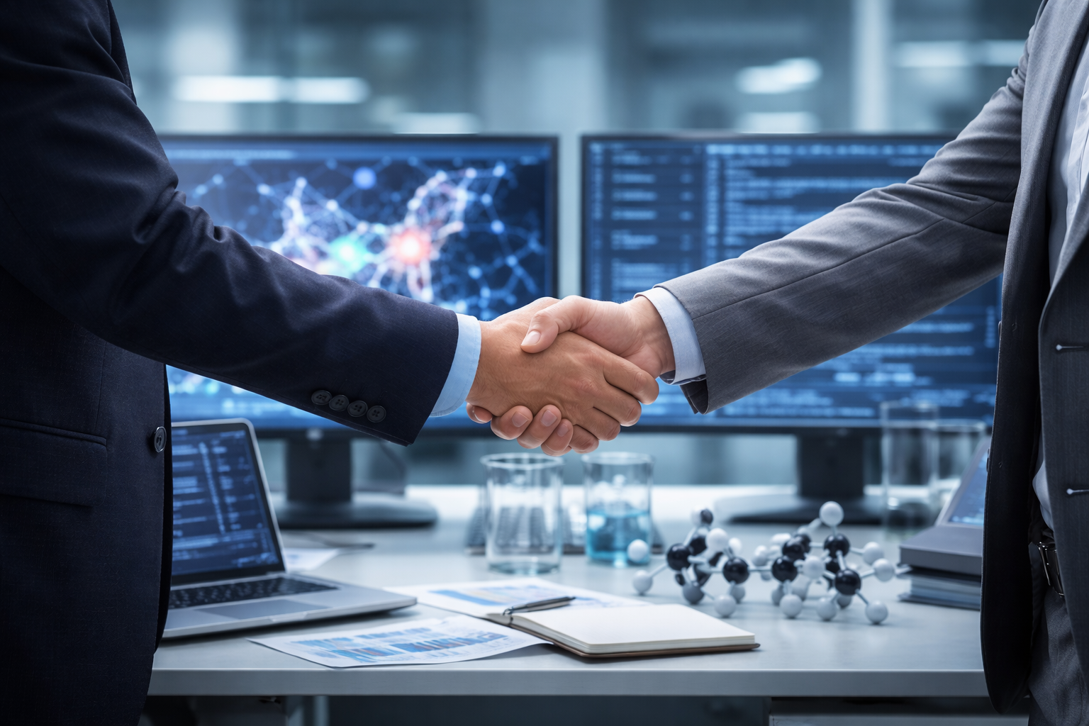 A flexible, collaborative model with shared ownership of molecular IP. We focus on AI-driven molecular design and early discovery, while retaining the flexibility to extend into compound synthesis, preclinical validation, and IND-enabling studies under co-development agreements.